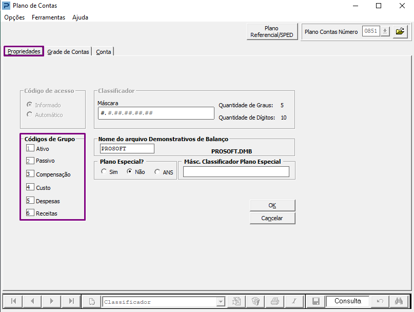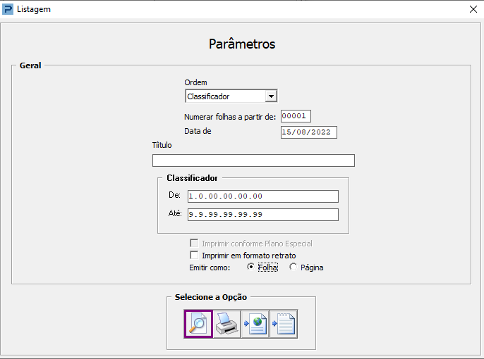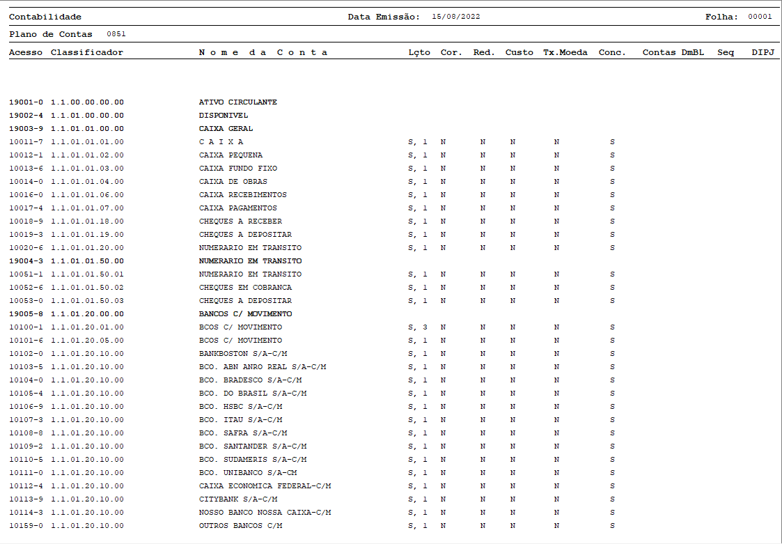 3- Emita o relatório e verifique se no Plano de Contas possui a conta Ativo (Classificador 1.0.00.00.00.00).