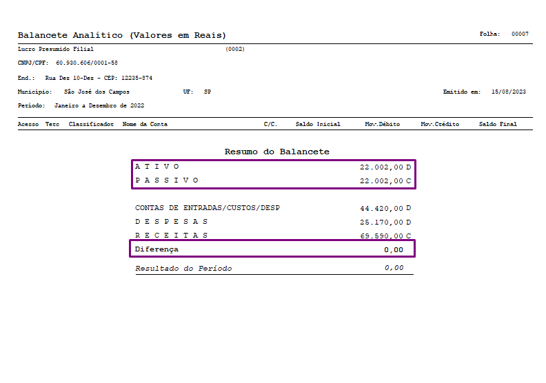 2- Emita o Balanço ou Balancete novamente e verifique se a diferença foi corrigida.