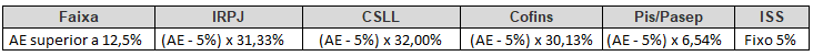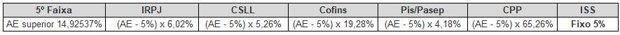 Cálculo da alíquota efetiva total (AE) 5ª faixa