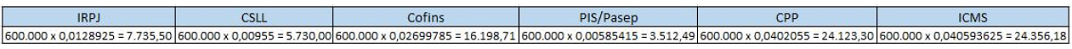 RBT Mensal x Alíquota efetiva por tributo = R$ 600.000,00 x Alíquota efetiva por tributo