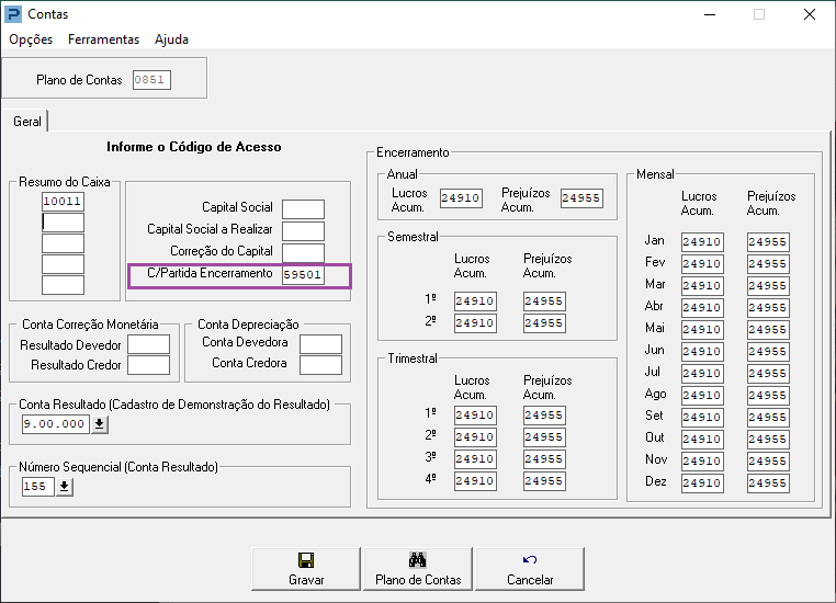 1- Acesse: Contábil > Contabilidade > Encerramento > Tabelas > Contas