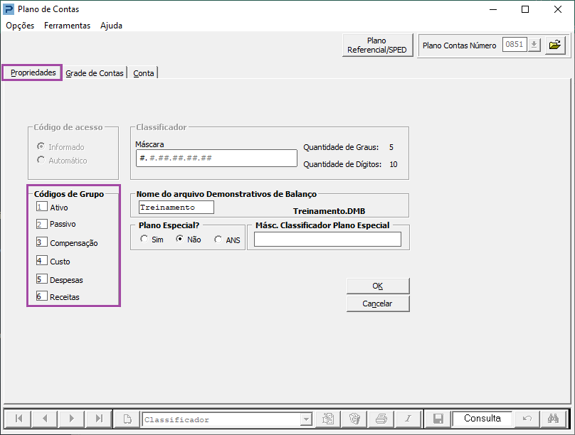 2- Verifique na guia Propriedades se a numeração dos grupos está informada.