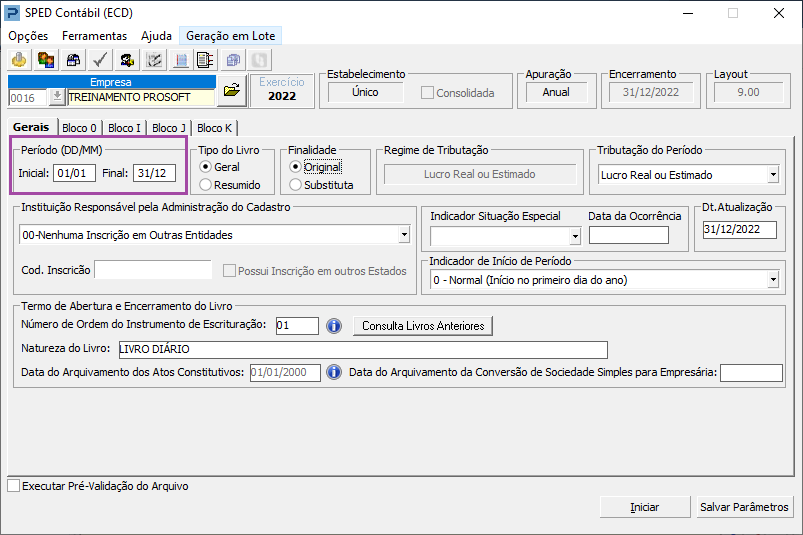 2- Verifique a data inicial e final informada para geração do arquivo.
