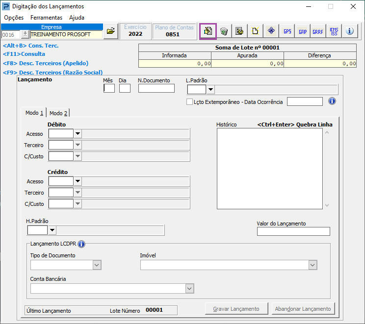 1- Acesse: Contábil > Contabilidade > Processamentos > Digitação dos Lançamentos