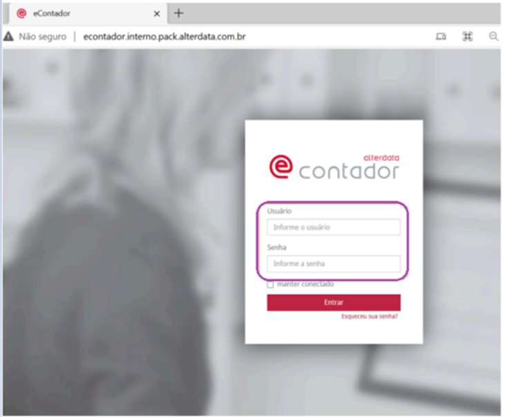 Para acesso ao eContador o cliente deve possuir um usuário habilitado com senha de acesso.