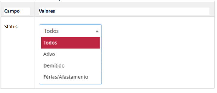 Caso pressione o item Filtro Avançado serão apresentados os campos abaixo: