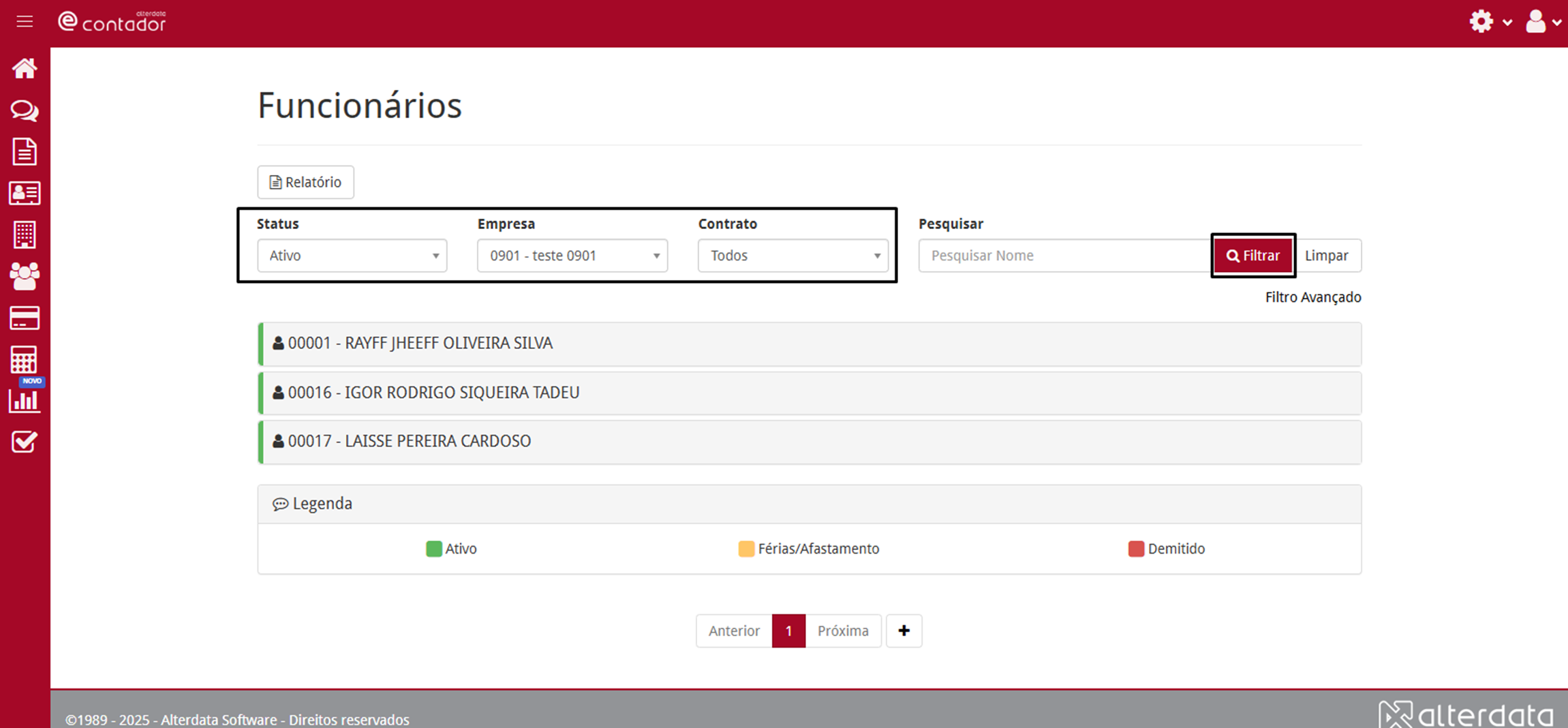 Local de exibição dos funcionários integrados da folha de pagamento para o eContador.