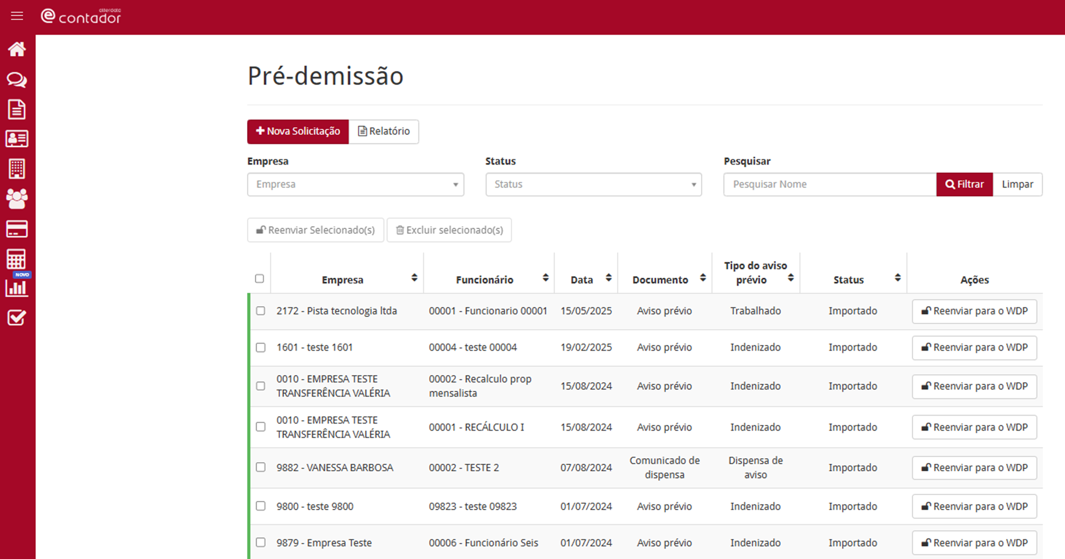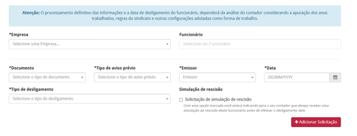 Após a importação pela folha de pagamento de uma solicitação de Notificação de Rescisão, caso o necessário a mesma poderá ser reenviada nesta opção:
