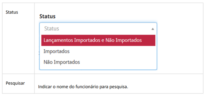 Para realizar a pesquisa das informações integradas o usuário poderá informar os detalhes para o filtro na tela acima informados: