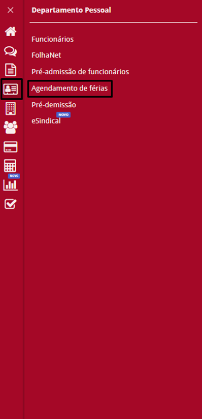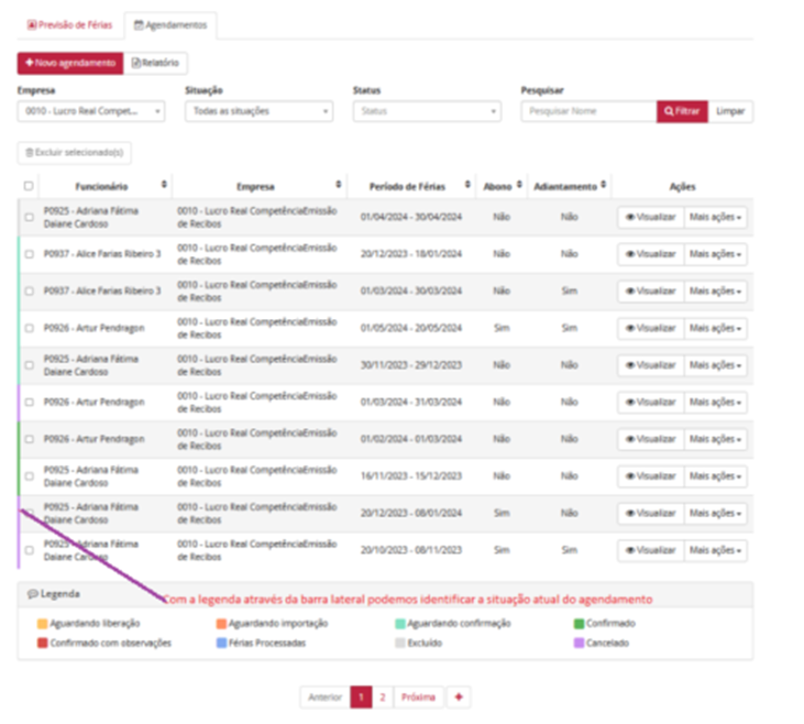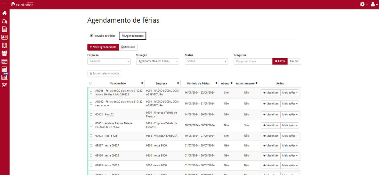 1- Acesse: Departamento Pessoal >Agendamento Férias aba Agendamentos