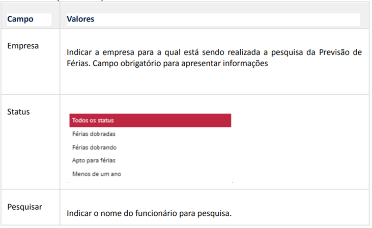 1- Acesse: Departamento Pessoal >Agendamento Férias aba Previsão de Férias Local que permite que o usuário visualize as informações referente aos períodos de férias enviados da folha de pagamento para o integrador