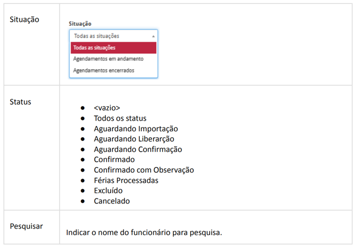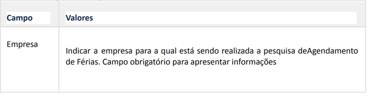 Permitir ao usuário consultar os Períodos Aquisitivos de Férias para realização de Agendamento das Férias para o funcionário