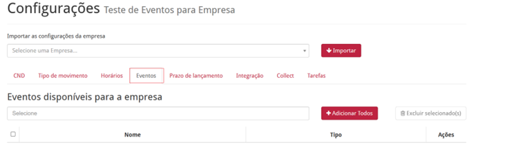 Caso deseje liberar para a empresa todos os eventos pressione o botão " +Adicionar Todos"
