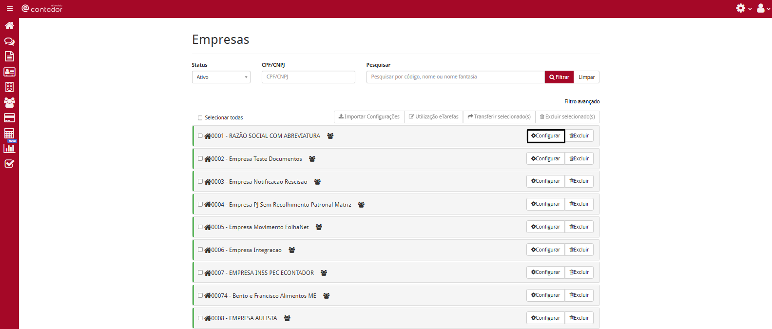 Sistema de apoio ao cliente, o seu “Escritório Virtual” onde podemos consultar todos os funcionários por empresa que estão integrados ao eContador.