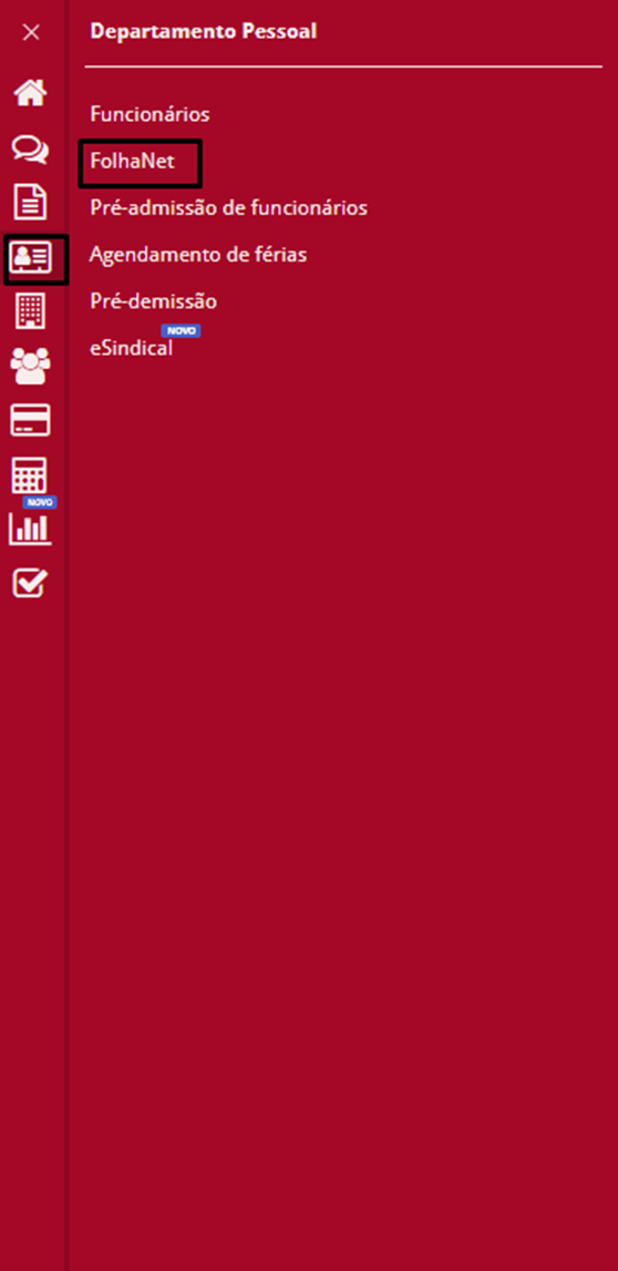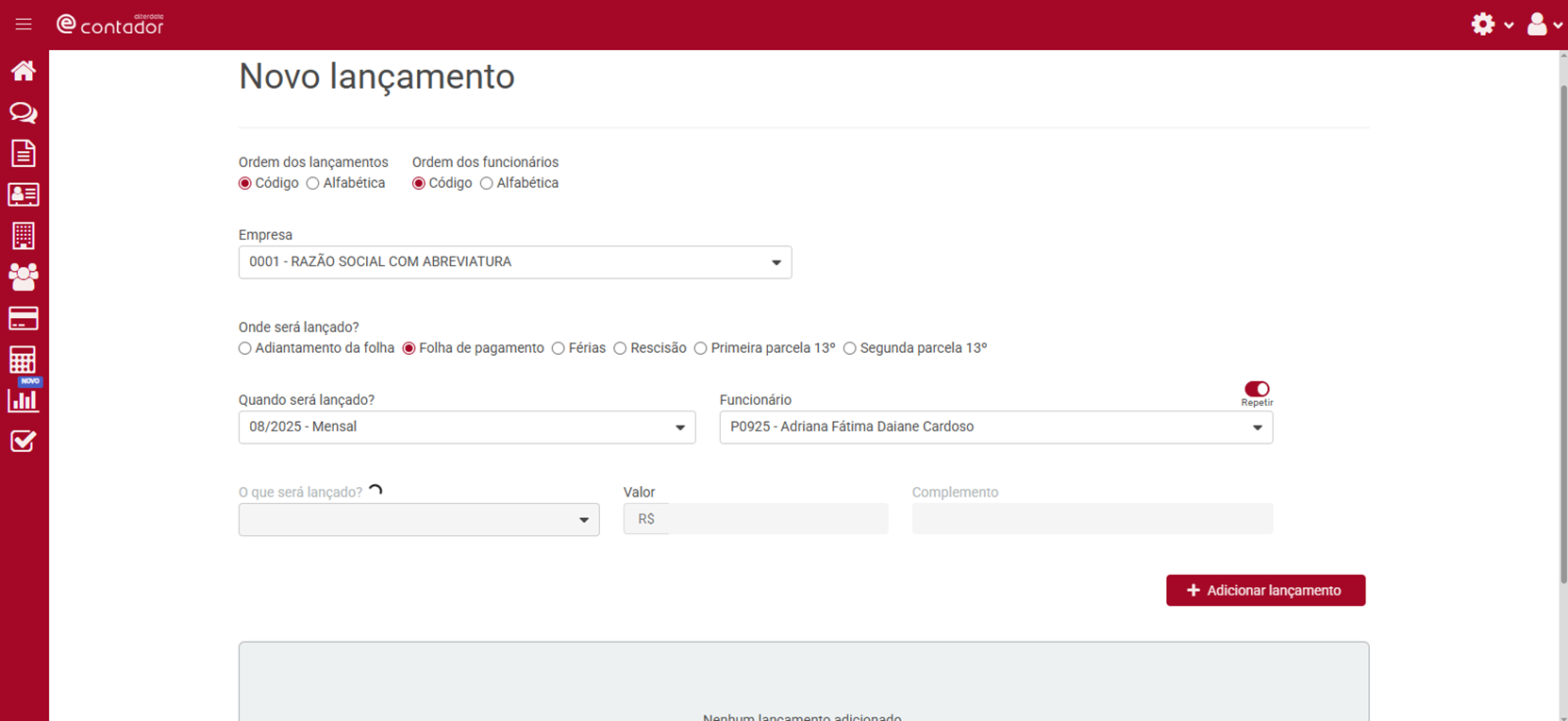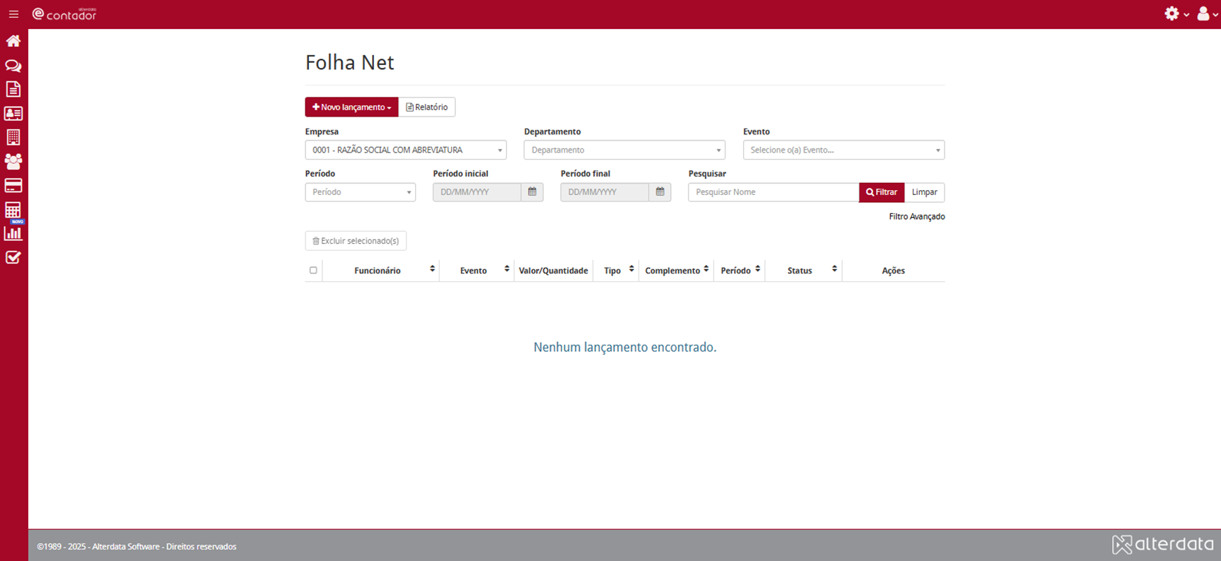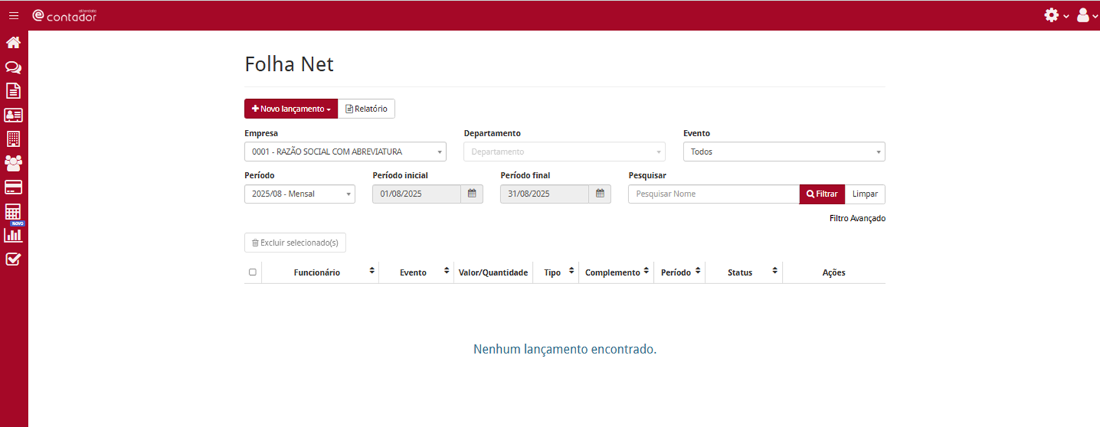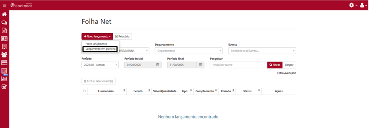 1-Departamento Pessoal> Folha Net > Novo Lançamento