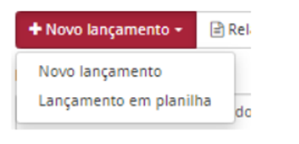 Ao pressionar o botão , duas opções de lançamento são apresentados conforme imagem a seguir: