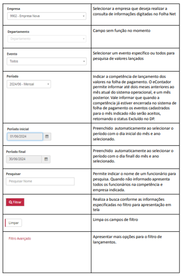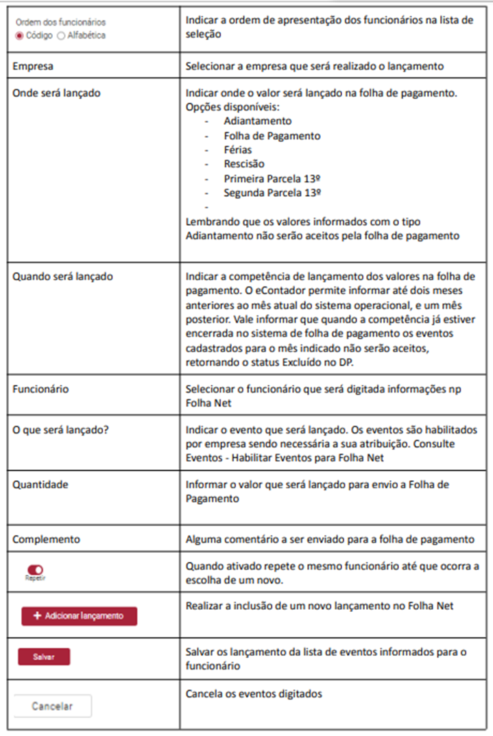 Configurar para a empresa quais terão os eventos enviados ao eContador que podem ser utilizados pela empresa para a digitação de valores na Folha NET que serão importados pela folha de pagamento.