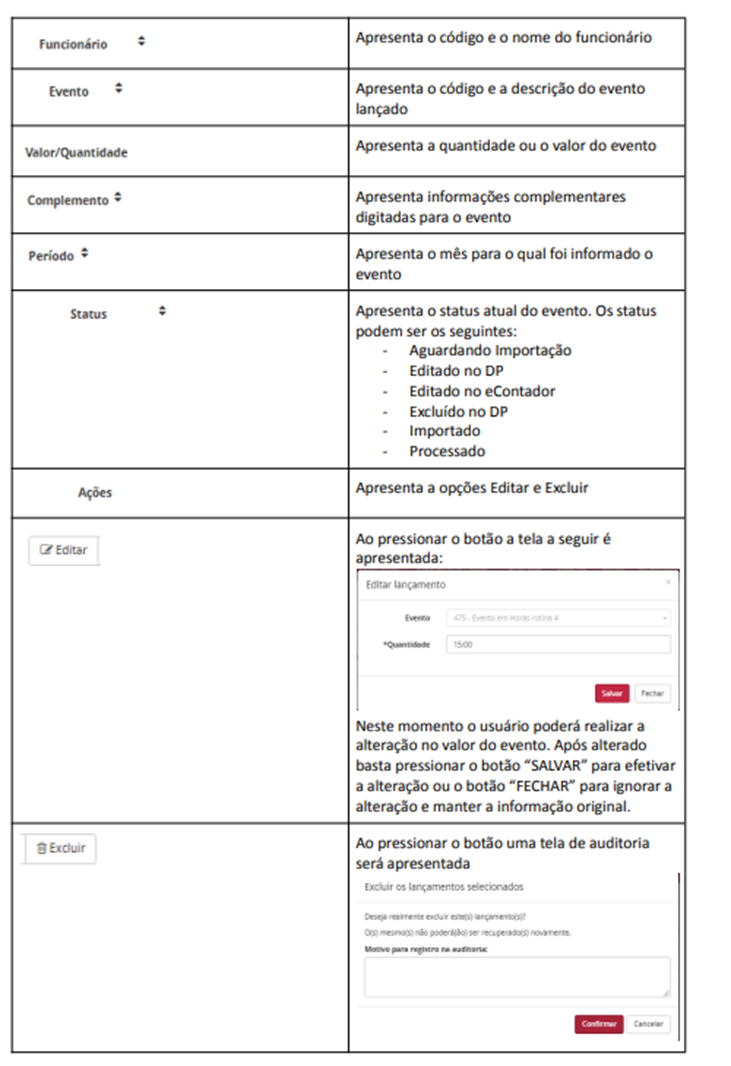 Durante o processo onde os registros não foram importados ainda para folha de pagamento o usuário poderá realizar uma edição da solicitação, pra isso, pressione o botão