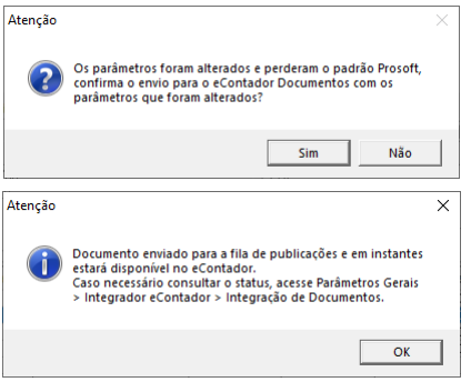 Para realizar a integração basta clicar no botão 'Confirmar', a partir desse momento o documento será publicado no portal eContador na página Documentos.
