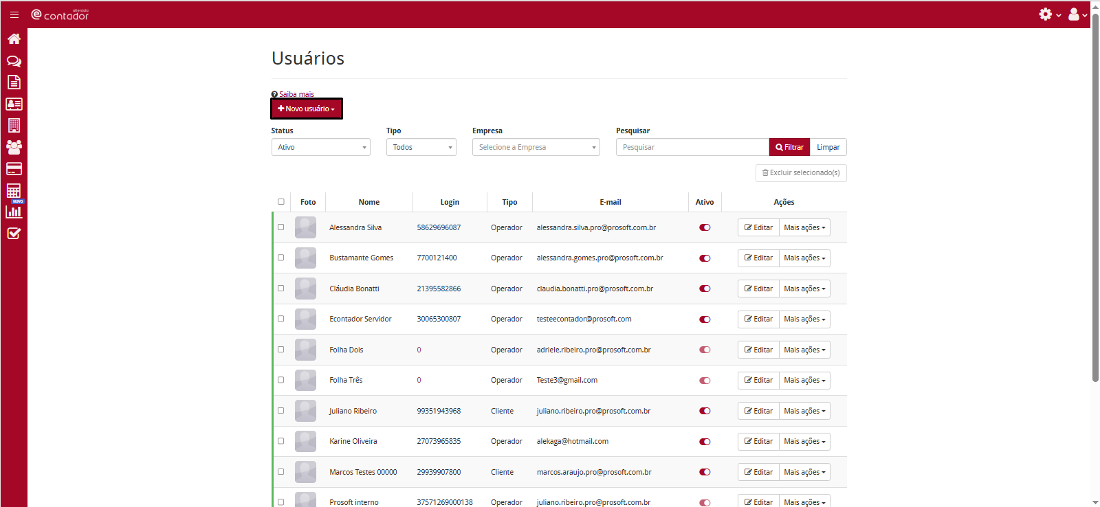 O cadastro de Usuário Cliente será utilizado para cadastrar os clientes do escritório, para que possam enviar ao escritório através do eContador informações ao contador, como por exemplo: Pré-admissões, pré-demissões; movimentação mensal, etc.