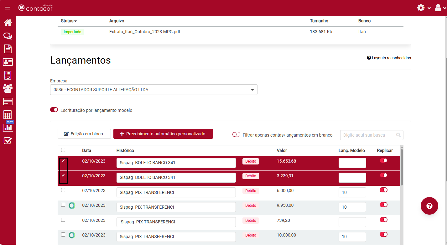 Para realizar a edição em bloco dos lançamentos no arquivo importado, siga o passo a passo: