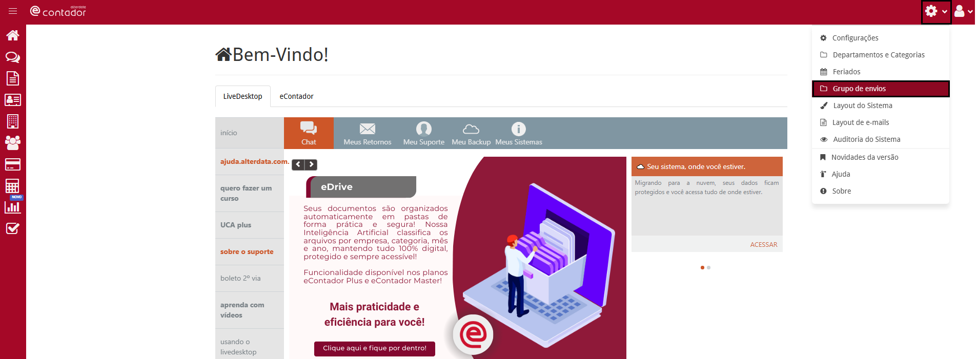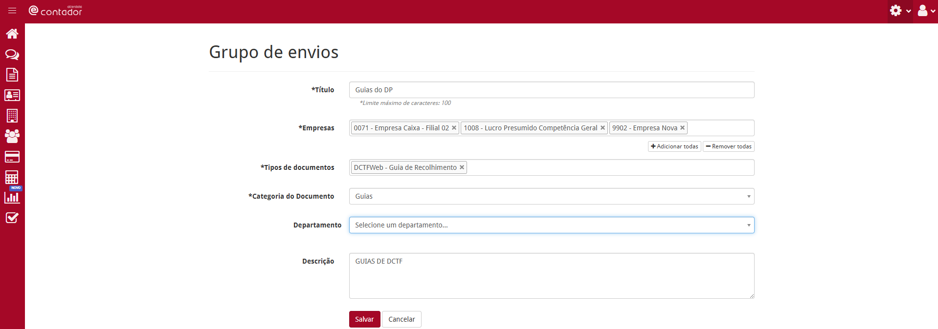 O Grupo de envios foi criado para facilitar, de forma que o cliente do Contador, receba um único e-mail com todos os documentos.