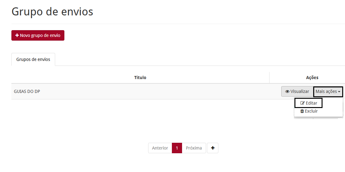 Após concluir o envio do grupo que estiver aberto em documentos gerais será possível editar esse grupo.
