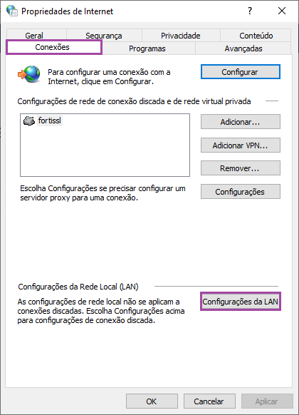 2. Clique na aba "Conexões" e depois no botão "Configurações da LAN"