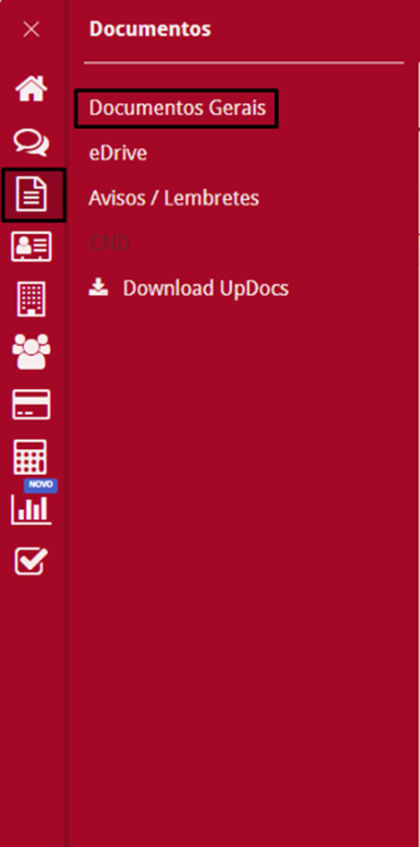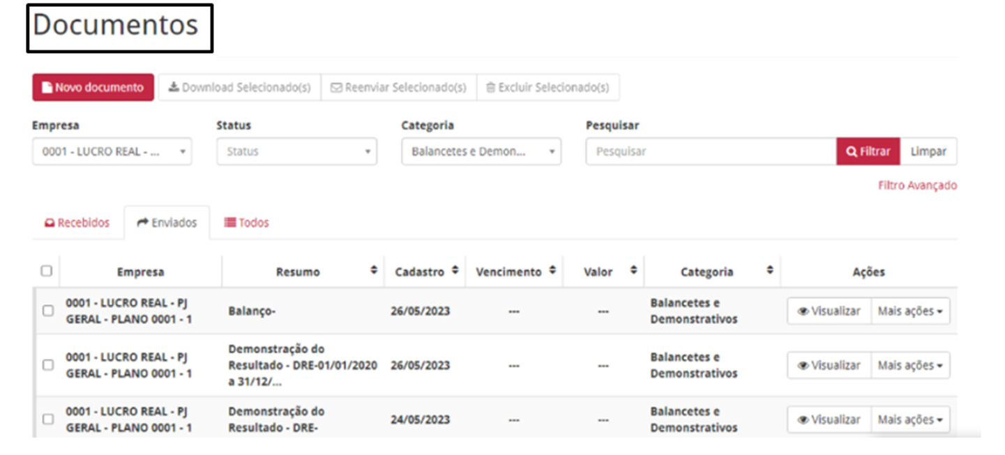 Os documentos importados com sucesso no Portal será apresentado na aba de "Documentos”.