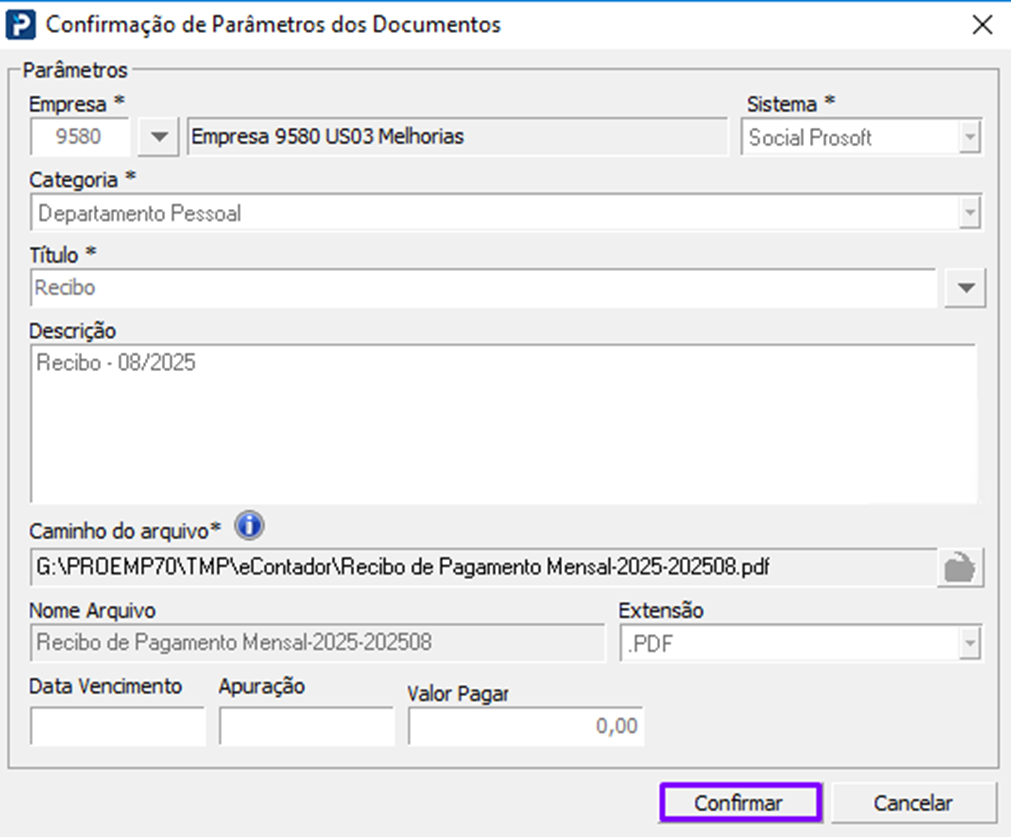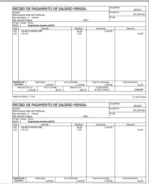 - “Recibo – Folha de Pagamento” Para a emissão do recibo Mensal