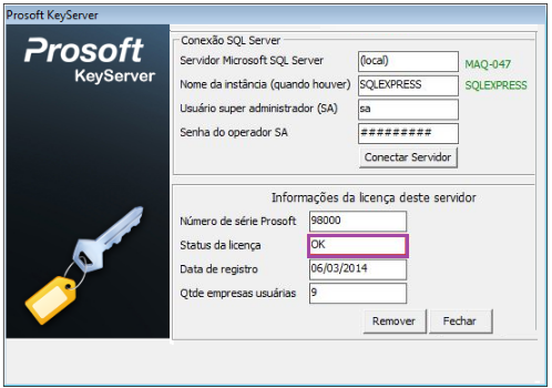 6 - Verifique que o status da licença ficou Ok. O sistema já está licenciado e pronto para utilização: