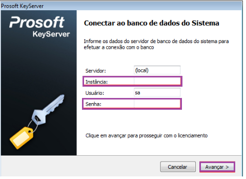 Nome da Instância: Caso o banco de dados não possua instância, deve-se deixar o campo Instância em branco;