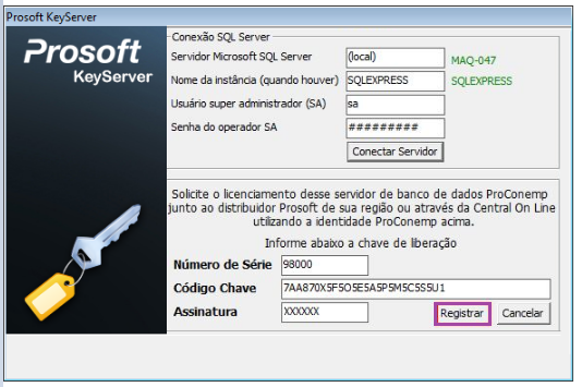 5 - Na parte inferior do assistente, irá constar as Informações da licença do servidor. Clique no ícone Registrar: