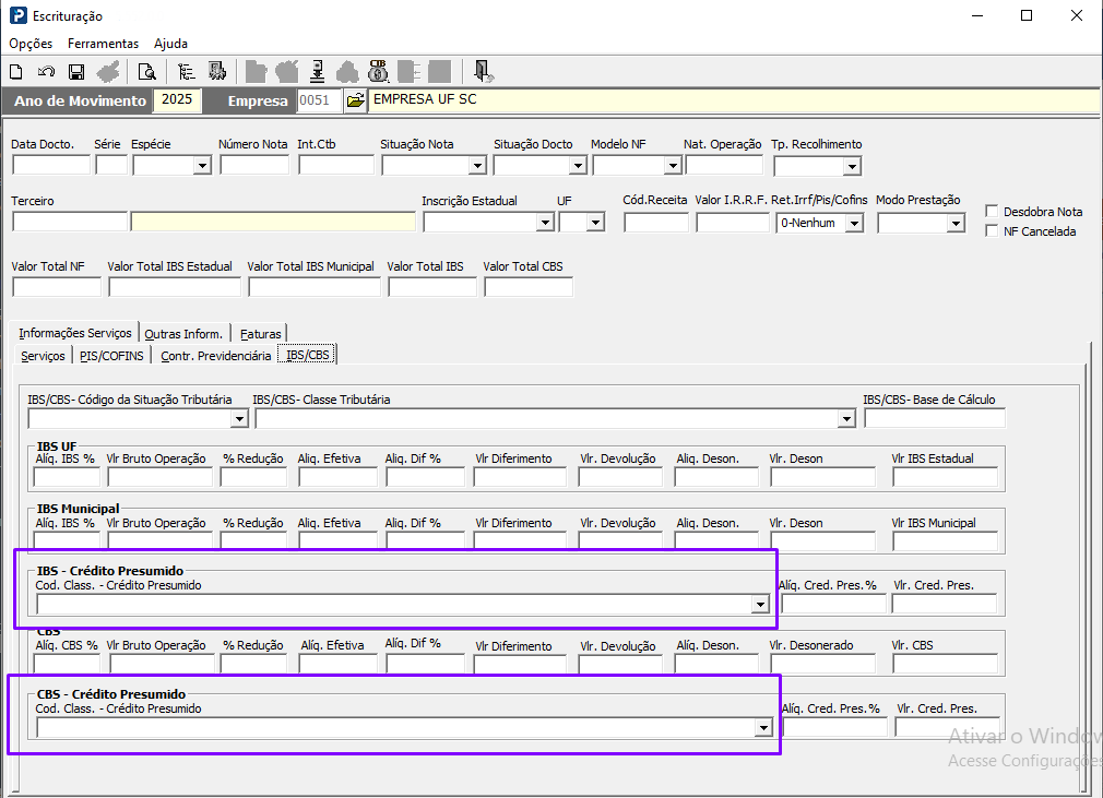 - Fiscal > Documentos Entradas e Saídas > Escrituração