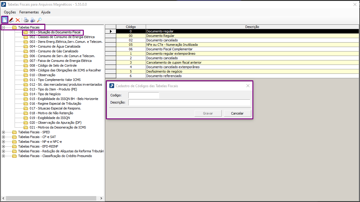 As Tabelas Fiscais para Arquivos Magnéticos armazenam informações importantes da escrituração de notas e para arquivos magnéticos, ela é preenchida automaticamente na implantação do sistema e realiza a integração automática com diversas rotinas.