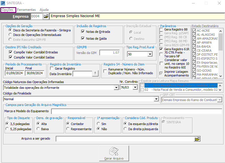 1- Acesse: Fiscal > Guias e Arquivos Magnéticos > Sintegra