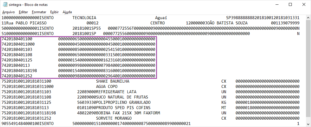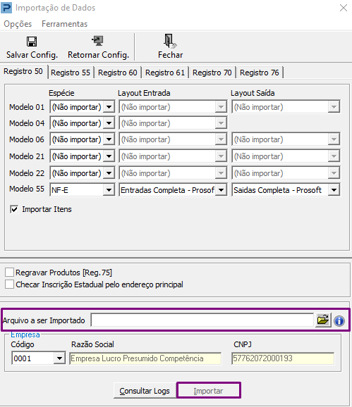 Para importar o arquivo Sintegra é necessário que o arquivo texto contenha o registro tipo 74