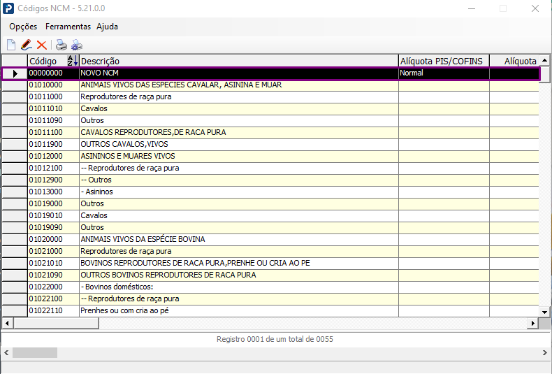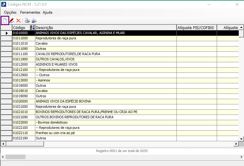 Acesse: Fiscal > Tabelas > Códigos NCM.