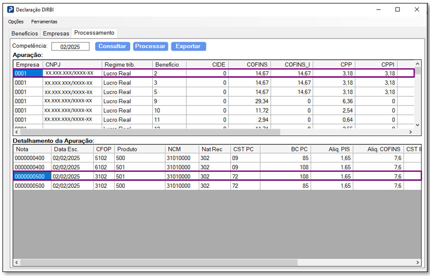 6- Ao clicar em Processar, o sistema realizará a busca das notas e produtos que serão contemplados no Benefício;