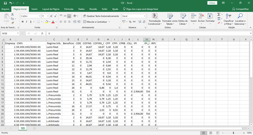 - CPRB: Valor total de Contribuição Previdenciária sobre a Receita Bruta
