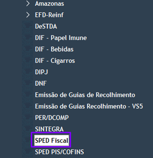 Siga o caminho: Fiscal > Guias e Arquivos Magnéticos > Sped Fiscal.