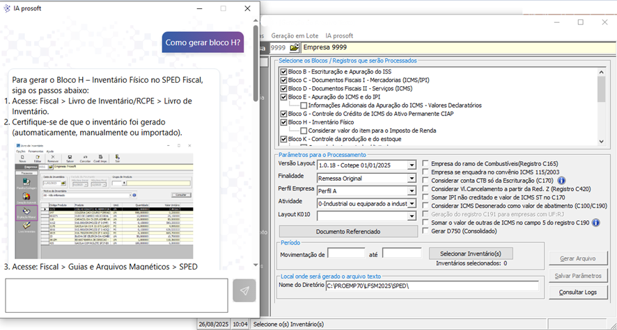 Você pode fazer perguntas sobre como a Prosoft Fiscal atende o SPED FISCAL, a IA prosoft poderá auxiliar em dúvidas de uso do sistema, trazendo de forma simples quais passos executar para conseguir efetuar a entrega de seu arquivo SPED.