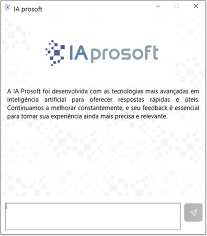Ao clicar no ícone, a IA prosoft será maximizada e suas dúvidas podem ser inseridas no campo disponível para digitação.