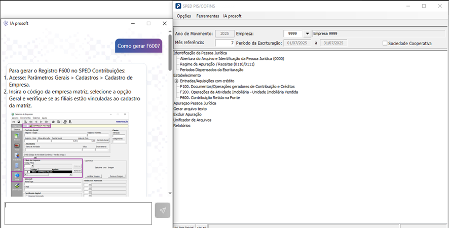 Obs: Atualmente, a IA prosoft responde questões exclusivamente sobre o EFD-Reinf, Sped Fiscal e Sped Contribuições, então questões fora deste contexto, não serão compreendidas.