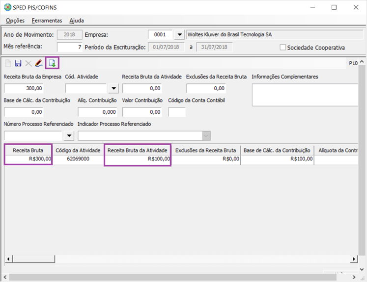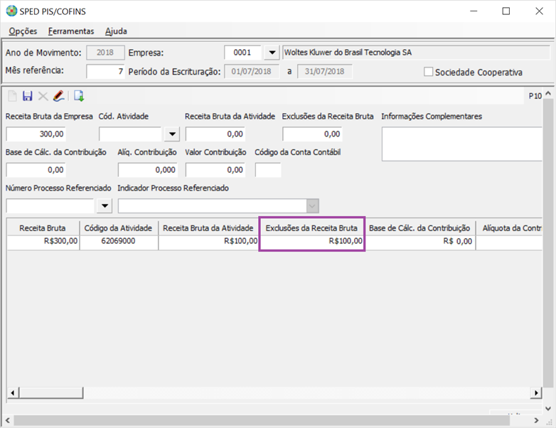 3 - Ao apurar o P100 o valor da nota de devolução é apresentado no campo Exclusões da Receita Bruta