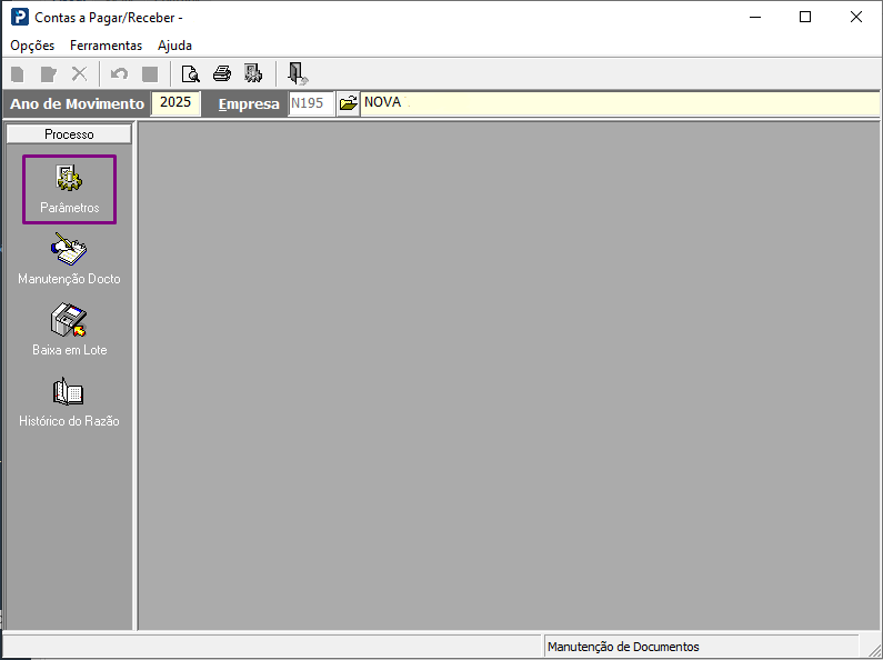 5- Acesse: Fiscal > Documentos Entradas e Saídas > Contas a Pagar/Receber > Guia Parâmetros.