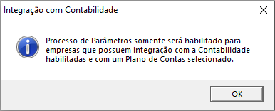 Caso a empresa não efetue a integração com a contabilidade será apresentada a mensagem: