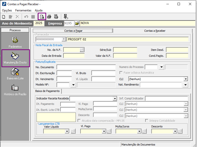 Na guia Manutenção de Documentos, é possível pesquisar as duplicatas existentes na rotina