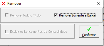 - Remove somente a Baixa – remove somente a baixa da rotina contas a pagar/receber.