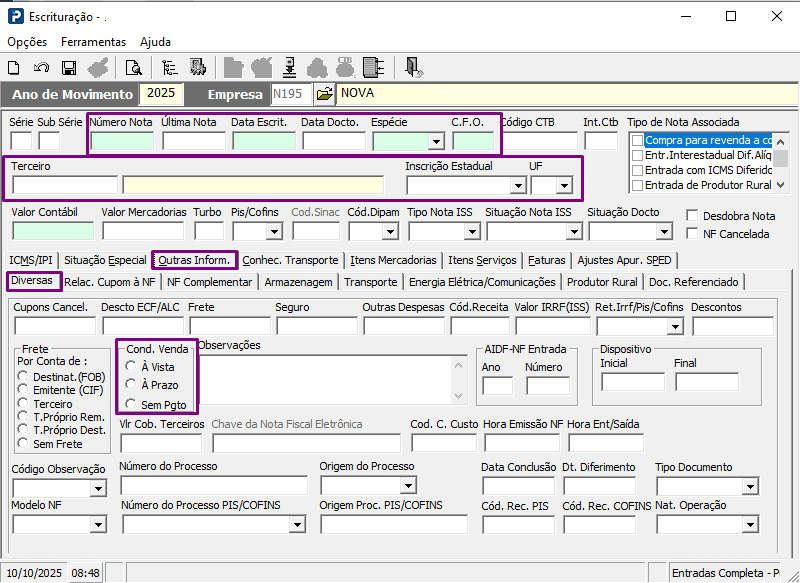 As informações são baseadas nos itens de mercadorias das notas fiscais e quantidade de parcelas informadas na guia faturas da escrituração.